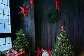 В нашем зале темнаяс светлая стороны и циклорама. на фото декор прошлого года. в этом сезоне цветовая гамма темной стороны остается прежней, но добавится высокая елка, шкаф и кресло....