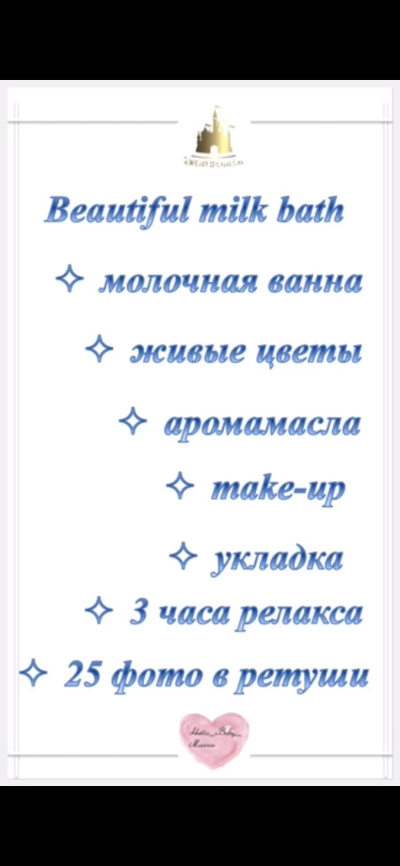 Приглашаем на трендовую фотосессию “Beautiful milk bath” Подарии себе три часа релакса!! Стоимость фотосессии 20000₽. До конца июня действует скидка 10%
