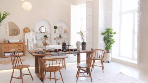 Панорамные окна, теплый паркет и светлые фактурные стены. Зал на южной стороне Офисная зона с прозрачным столом и ноутбукомОбеденная зонаЗона гостиная с диваном и ковромДизайнерское зеркало в пушистой рамкеЗона с гримерным столикомИ большое кресло...