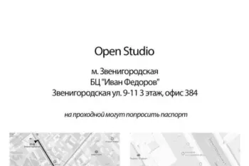 м. Звенигородская, Звенигородская ул. 9-11, БЦ"Иван Федоров" 3 этаж Офис -384,Open Studio! На проходной могут попросить паспорт! т. +7 929 103-34-46 in.openstudio@gmail.com...