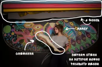 Интерьер №1 - Фоны включает:⭐Автоматический привод с 6 фонами (белый, серый, голубой, розовый, желтый, тканевый песочный) ⭐Черная стена для рисования мелом (мел предоставляем, можно прийти пораньше, чтобы разрисовать без учета времени аренды, всегда есть...