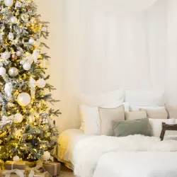 Оформленный в белых, серых и серебристых тонах, минималистично декорированный зал Balance станет идеальным пространством для стильных новогодних кадров.