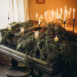 Зал Мастерская — уютное пространство в новогоднем оформлении, которое переносит в атмосферу зимней сказки.