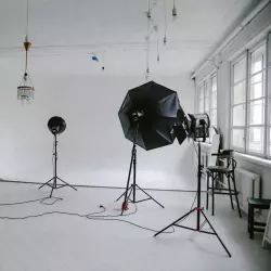 Зал площадью 45 кв.м с белой угловой циклорамой. Основная часть зала - 35 м (5.2 х 6.7) +11 кв.метров дополнительная часть, оборудованная собственным гримерным местом.