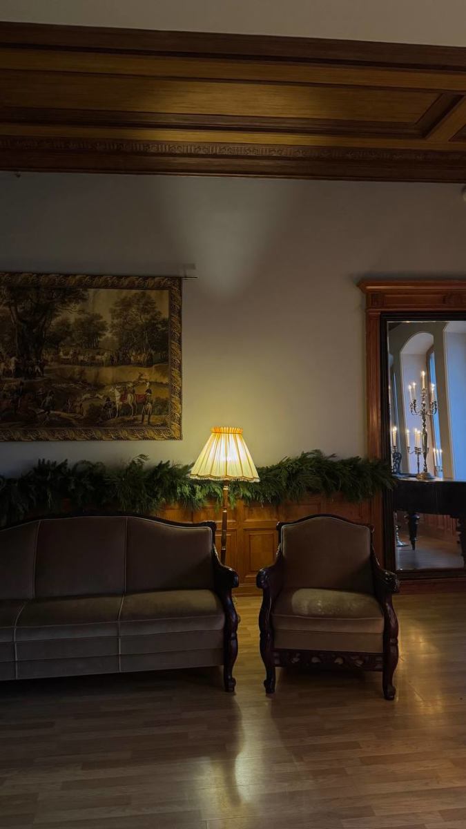 Гостиная в особняке на Выборгской, 45 квадратных метров. Окна с видом на Неву на юго-западную сторону, солнечные лучи днем и ближе к закату