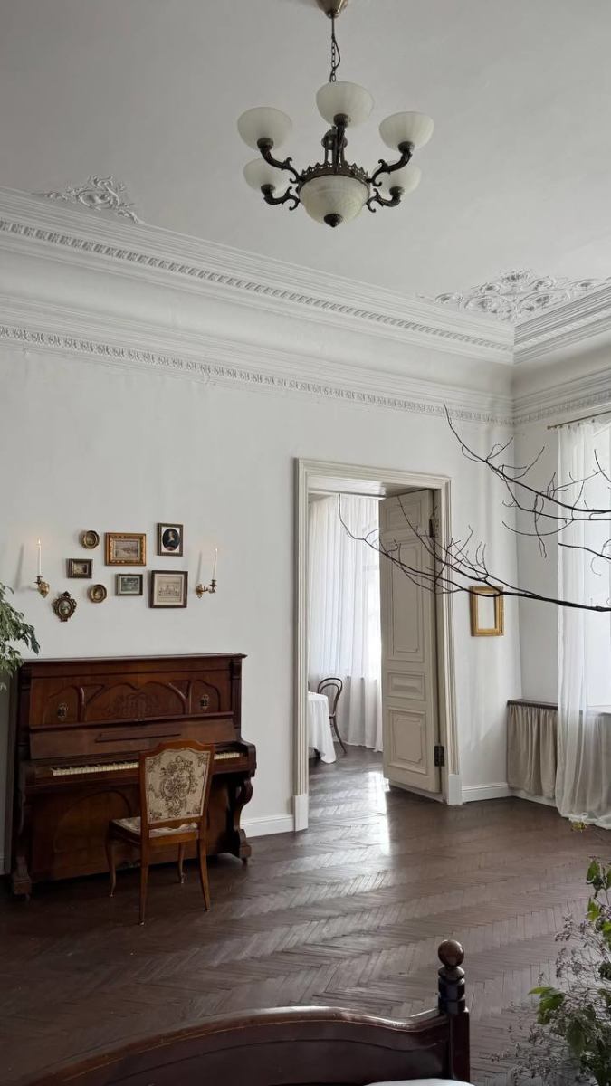 Гостиная в особняке на Выборгской, 45 квадратных метров. Окна с видом на Неву на юго-западную сторону, солнечные лучи днем и ближе к закату