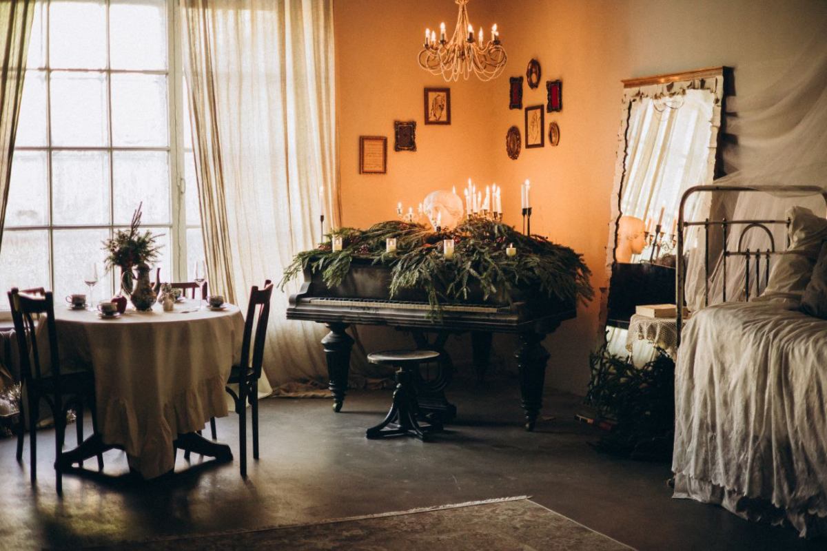 Оформленный в белых, серых и серебристых тонах, минималистично декорированный зал Balance станет идеальным пространством для стильных новогодних кадров.