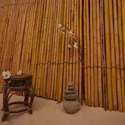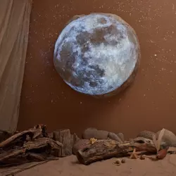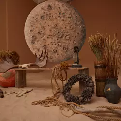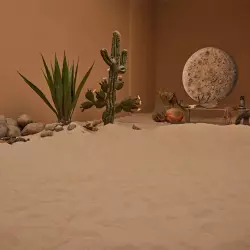 Светлый зал с песчаными дюнами и терракотовой циклорамой.