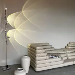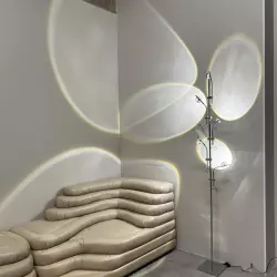 Песочные тона в сочетании с играющими потоками света ламп дюна.