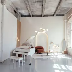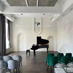 Большой интерьерный зал созданный специально для записи звука и наполненный постоянным светом для любой фото/видеосъемки. Шумоизоляция и акустические панели на стенах. Площадь - 85 кв.м