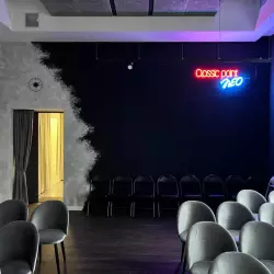 Темный зал площадью 30 кв.м созданный специально для записи звука, здесь проводятся записи интервью, подкастов и тд.