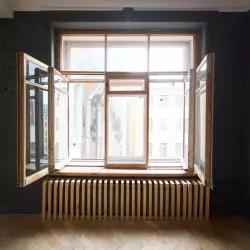 3 окна выходят на северо-запад, во двор Большого пр, потолок 3,3 м. Окна закрываются шторами-блекаут