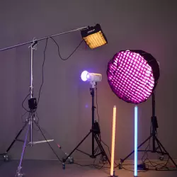 Все необходимое оборудование - сразу входит в аренду без доплат: два импульсных источника, два постоянных, все насадки и много другое