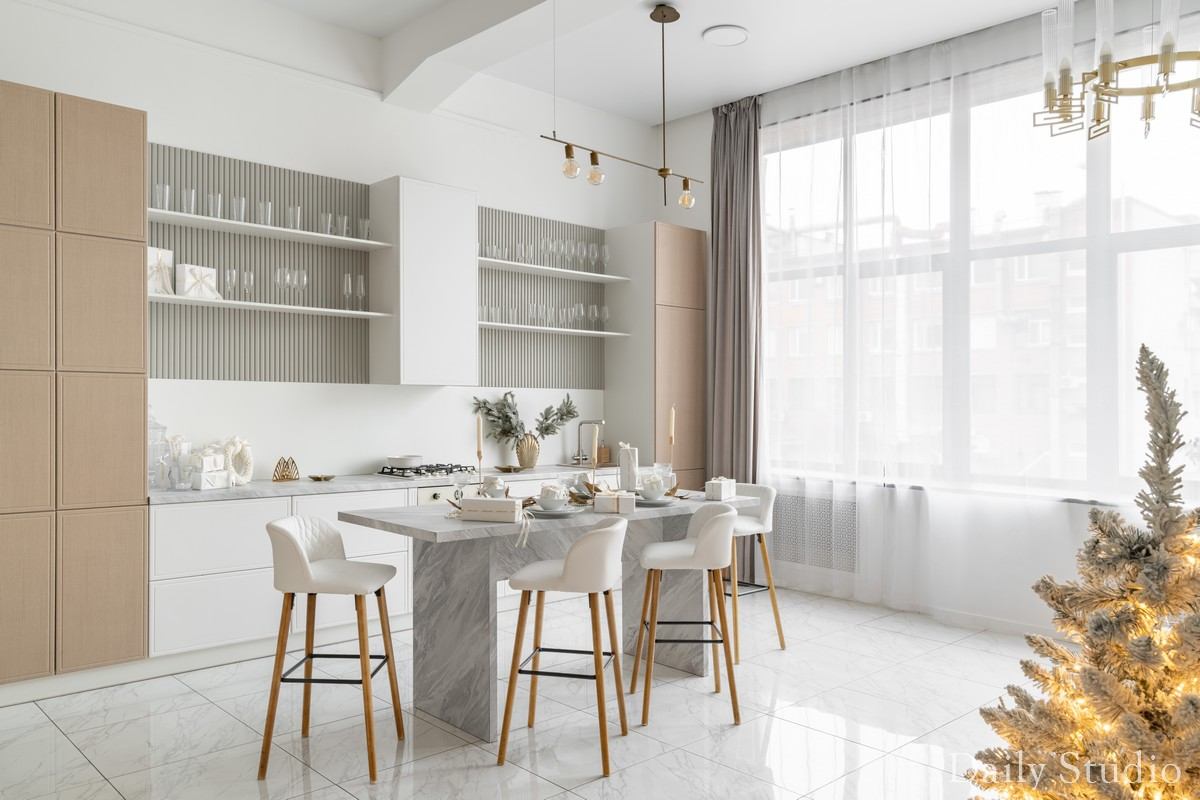 Лаконичный новогодний декор делает зал изящным и элегантным.