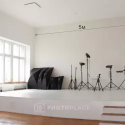 Белый зал — просторный минималистичный светлый зал с большими окнами и циклорамой.