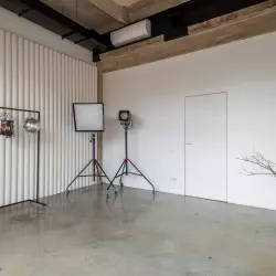 Площадь зала 40м2. Высота потолков 6,5м. Зал выполнен в тёмном стиле. Идеально подходит для ярких снимков и открывает широкие возможности для творчества.