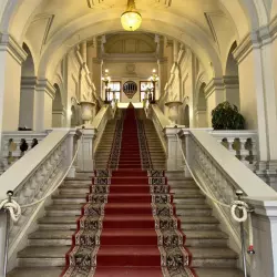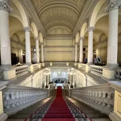 Холл и лестница с ковровой дорожкой во дворце Кваренги