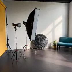 Все необходимое оборудование - сразу входит в аренду без доплат: два импульсных источника, два постоянных, все насадки и много другое