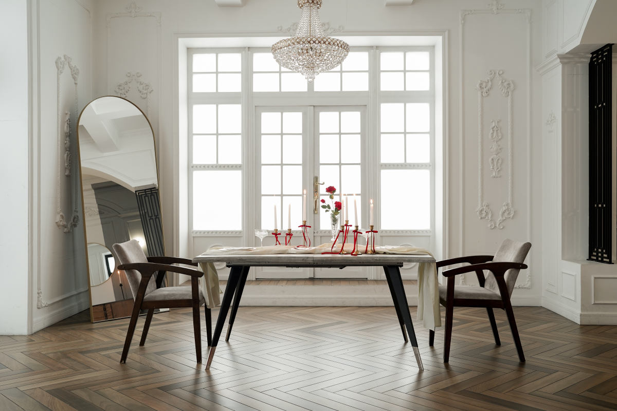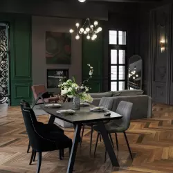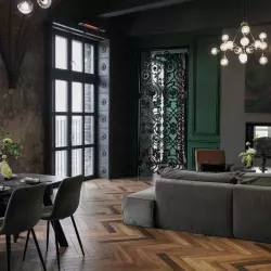 Историческая лепнина и паркет 20 века, высокие потолки, и огромное количество естественного света! Окна зала выходят на южную сторону.