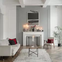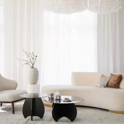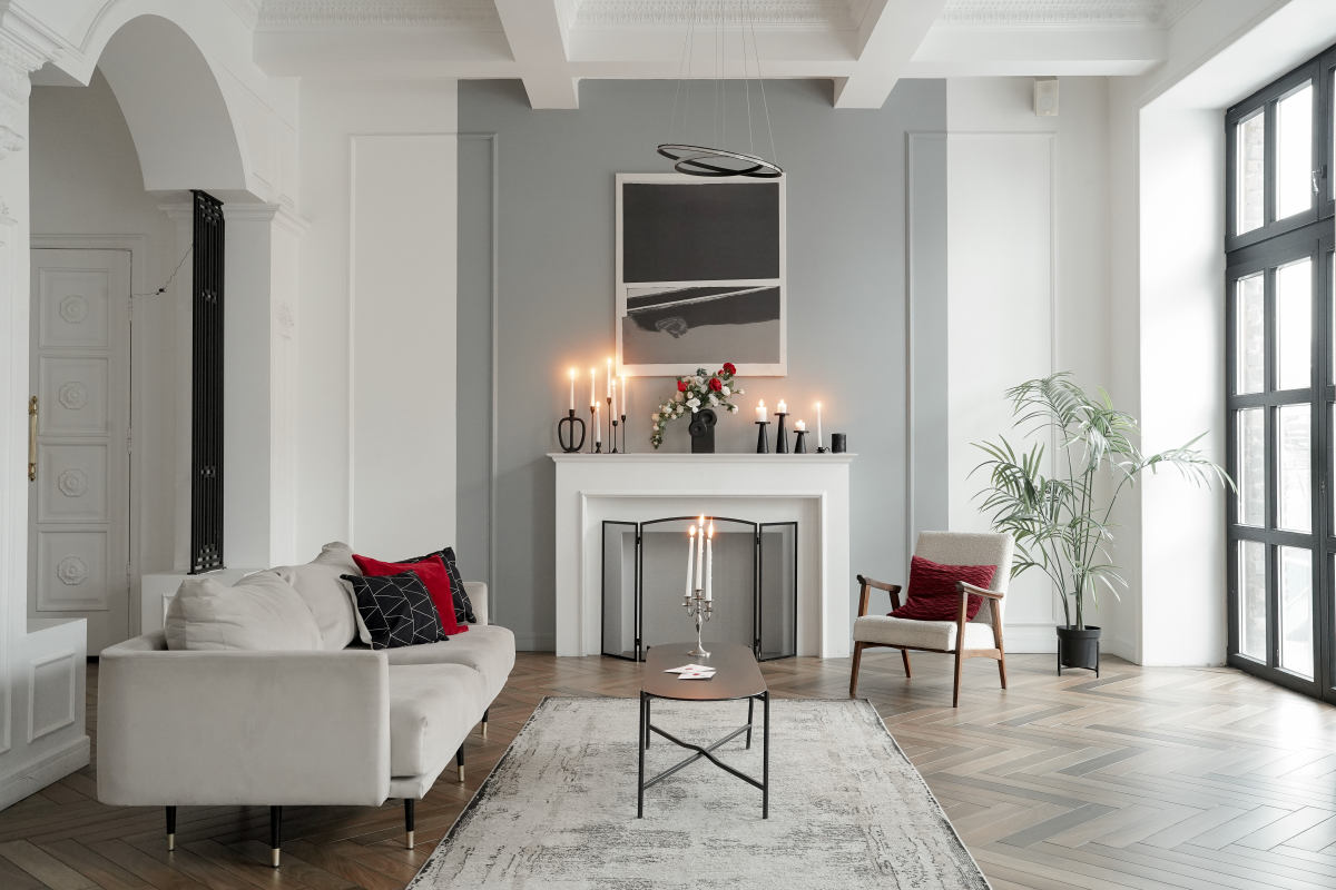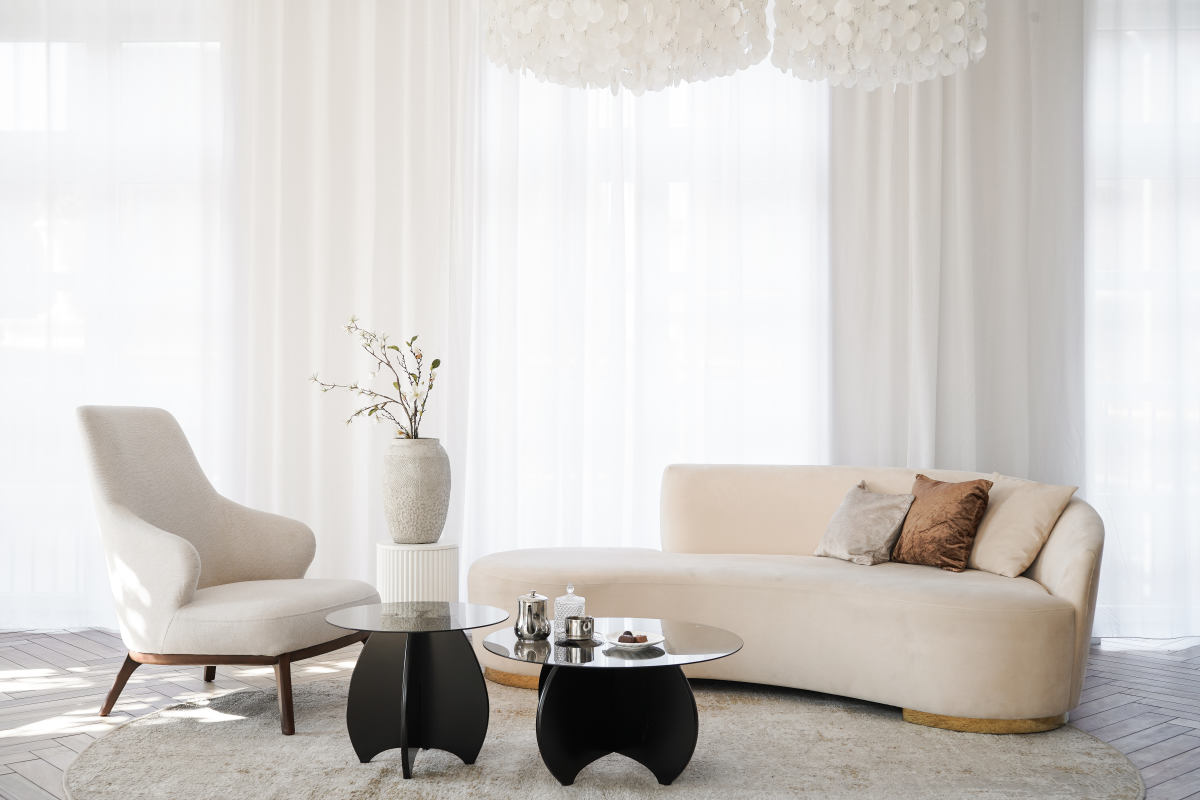 Светлый зал с акцентом на минимализм и современные тренды.