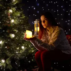 Имеется 2 зоны: циклорама и зона с новогодней локацией на красном фоне. В 2 раза больше возможностей для съемки.