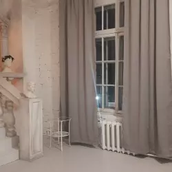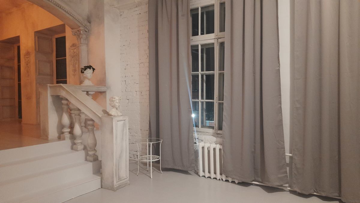 Просторный зал с большой белой циклорамой. В зале есть все необходимое для вашей съёмки или мастер-класса. Солнечные лучи с 11 утра до заката. Плотные шторы блэкаут на окнах. Постоянный и импульсный свет, маски Гобо, цветные фильтры, цветные бумажные и тканевые фоны, реквизит.