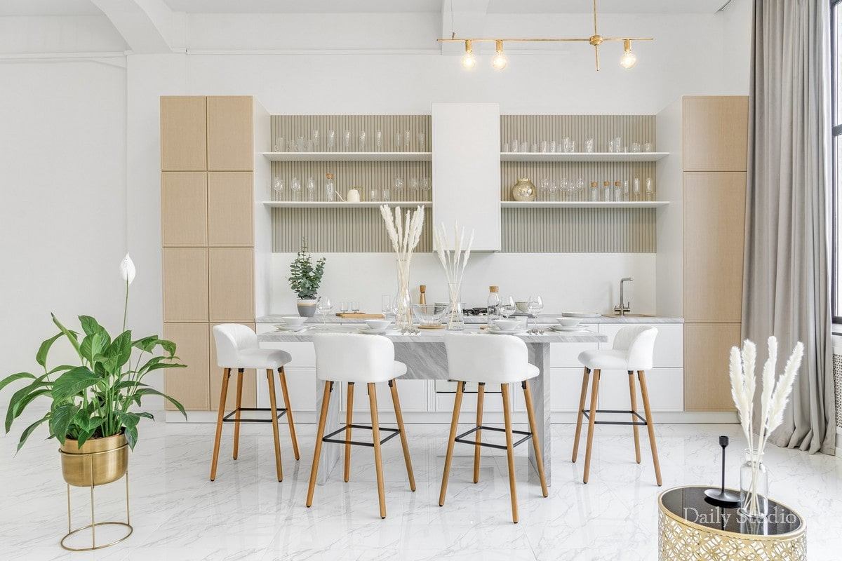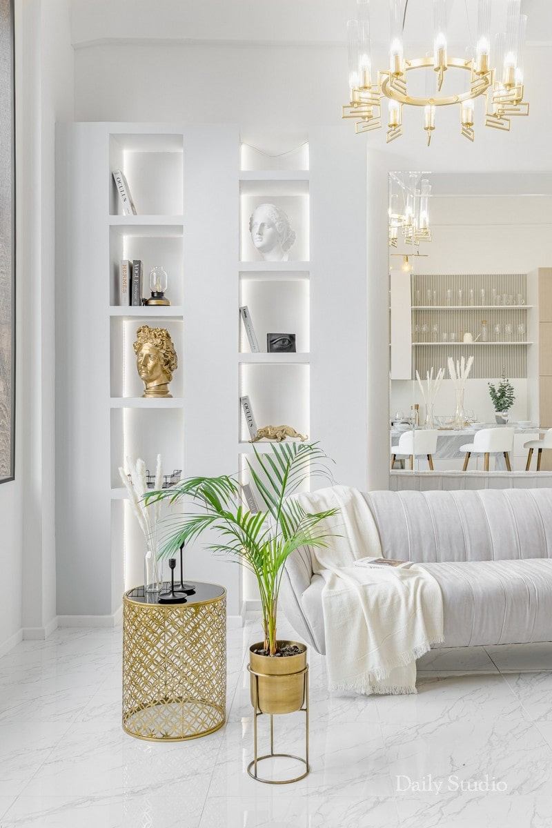 Современный интерьер в скандинавском стиле, качественная мебель,