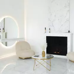 Гримерка расчитана на 3-4 визажиств с просторной зоной ожидания, отпариватель, рейл для вещей.
