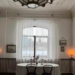 Зал с роскошным видом на угол Летнего сада, Прачечный мост, Петропавловскую крепость и тд. Состоит из двух комнат общей площадью более 80 кв.м. Идеально подходит для любой свадебной съемки, отлично подходит для свадебных сборов!оригинальная лепнина, деревянный дубовый паркет