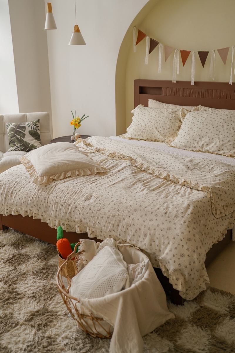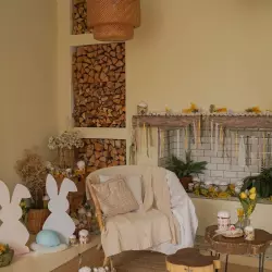 Подвесная система бумажных фонов, светлые фактурные стены, 2 декорации: сад-огород, романтический стиль