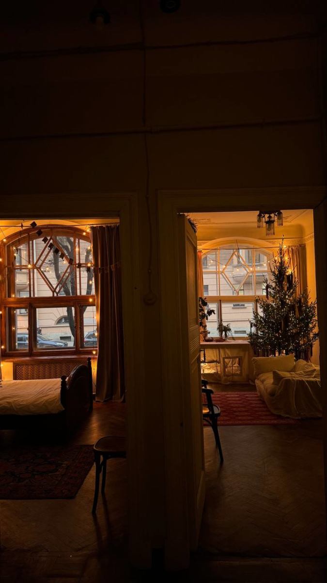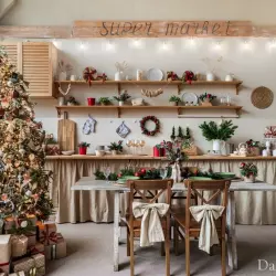 Зал Мастерская — уютное пространство в новогоднем оформлении, которое переносит в атмосферу зимней сказки.
