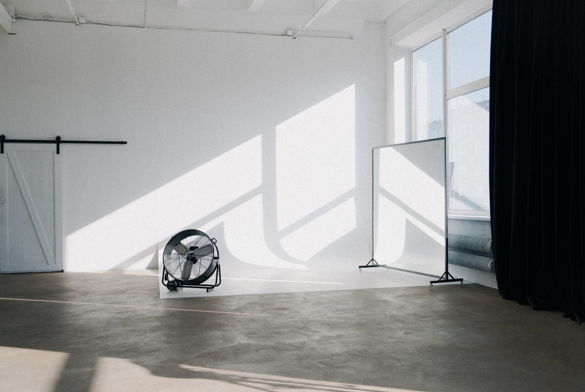 Просторный зал с большой белой циклорамой. В зале есть все необходимое для вашей съёмки или мастер-класса. Солнечные лучи с 11 утра до заката. Плотные шторы блэкаут на окнах. Постоянный и импульсный свет, маски Гобо, цветные фильтры, цветные бумажные и тканевые фоны, реквизит.