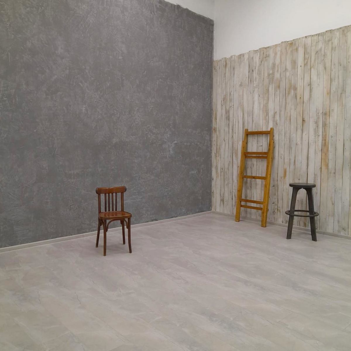 Комфортный недорогой зал.Большая текстурная стена.Различные стулья, кресла, небольшой диван.Деревянная стена.Осветительная рама - кольцо.Белая стена. Школьная фотозона.Фоновая система с цветными бумажными фонами.Гримерный стол.