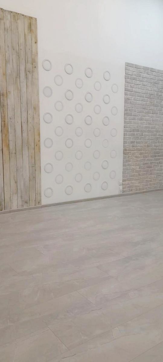 Минималистичный светлый зал с белыми стенами, циклорама, высокие потолки, деревянный пол, отсутствие окон даёт возможность полного затемнения зала, кондиционер. Возможность установки любого фона из наличия, гримёрное место.