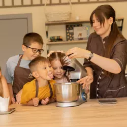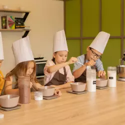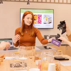 Светлое уютное пространство площадью 26 м² с высоким деревянным столом на 10 персон, мягкими барными стульями, большим количеством естественного света и лаконичным интерьером. Предусмотрена барная стойка с варочной панелью и дополнительным источником света, тв-экран.
