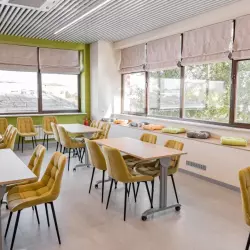 - Зона отдыха: Расслабьтесь на удобном диване с чашечкой ароматного кофе из кофемашины, или выберите один из 5 сортов чая. К кофе и чаю подаём печенье.