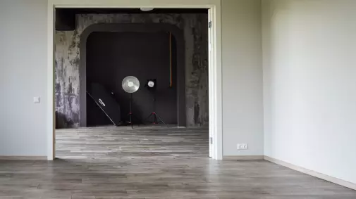 Зал фотостудии 35 м 2, высота потолка - 3 м.