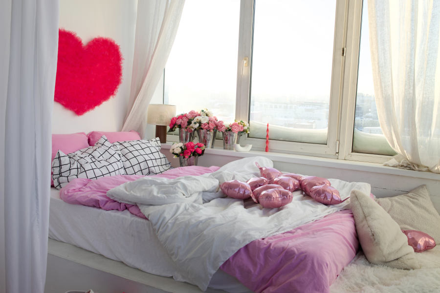 напольный матрас с постельным бельём на выбор (белое и розовое)