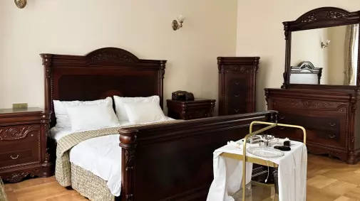 - раздвижной обеденный стол на 6−8 человек со стульями