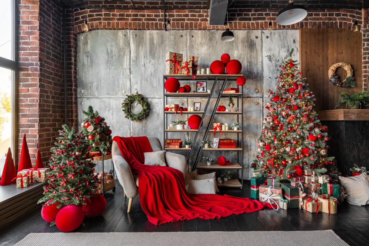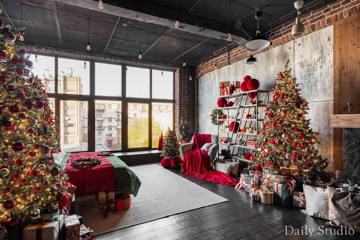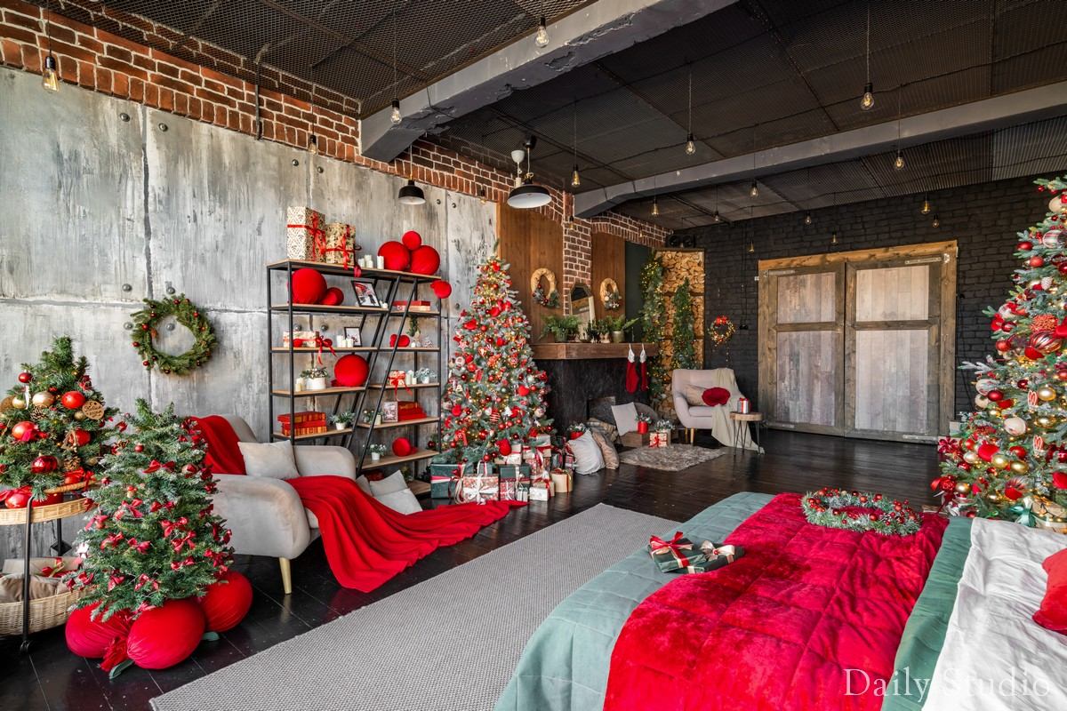 В новогоднем зале Urban царит волшебная атмосфера праздника, где каждый уголок наполнен теплом и уютом. Красные, черные и коричневые цвета создают гармоничное сочетание, которое дарит ощущение праздника.