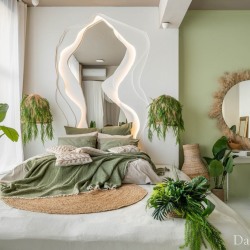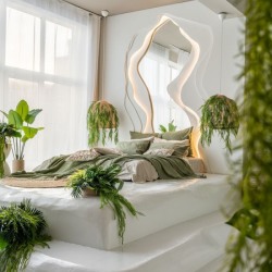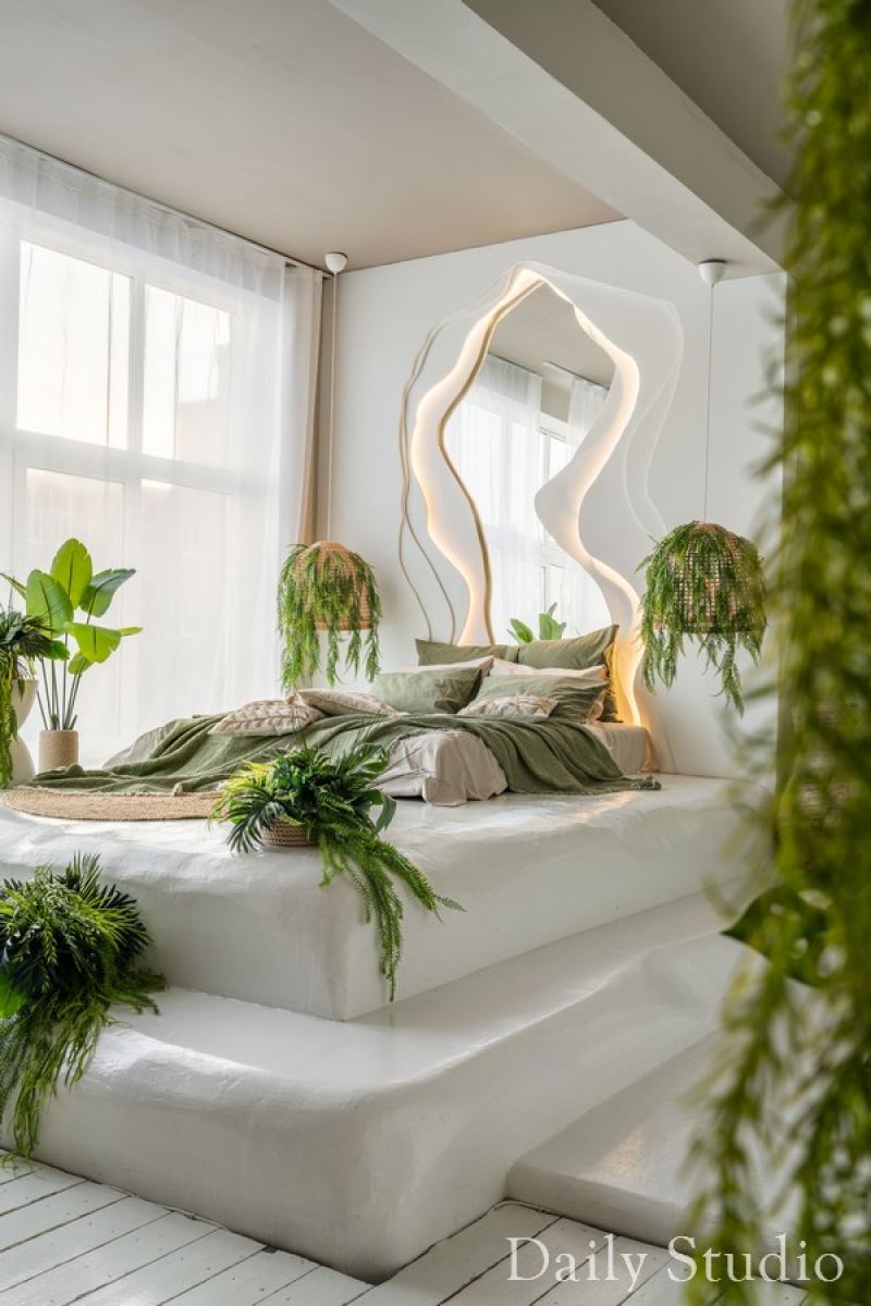 — светлый многоуровневый подиум с уютной спальной зоной;
