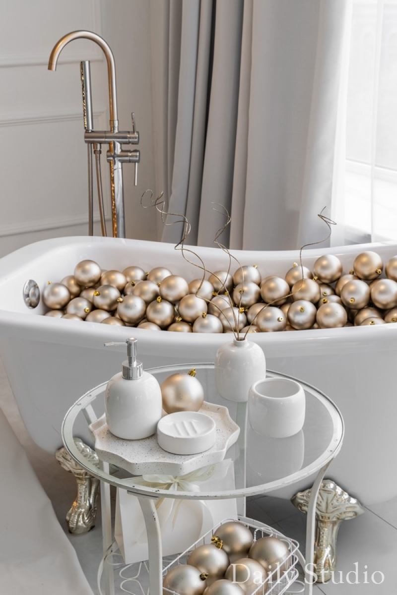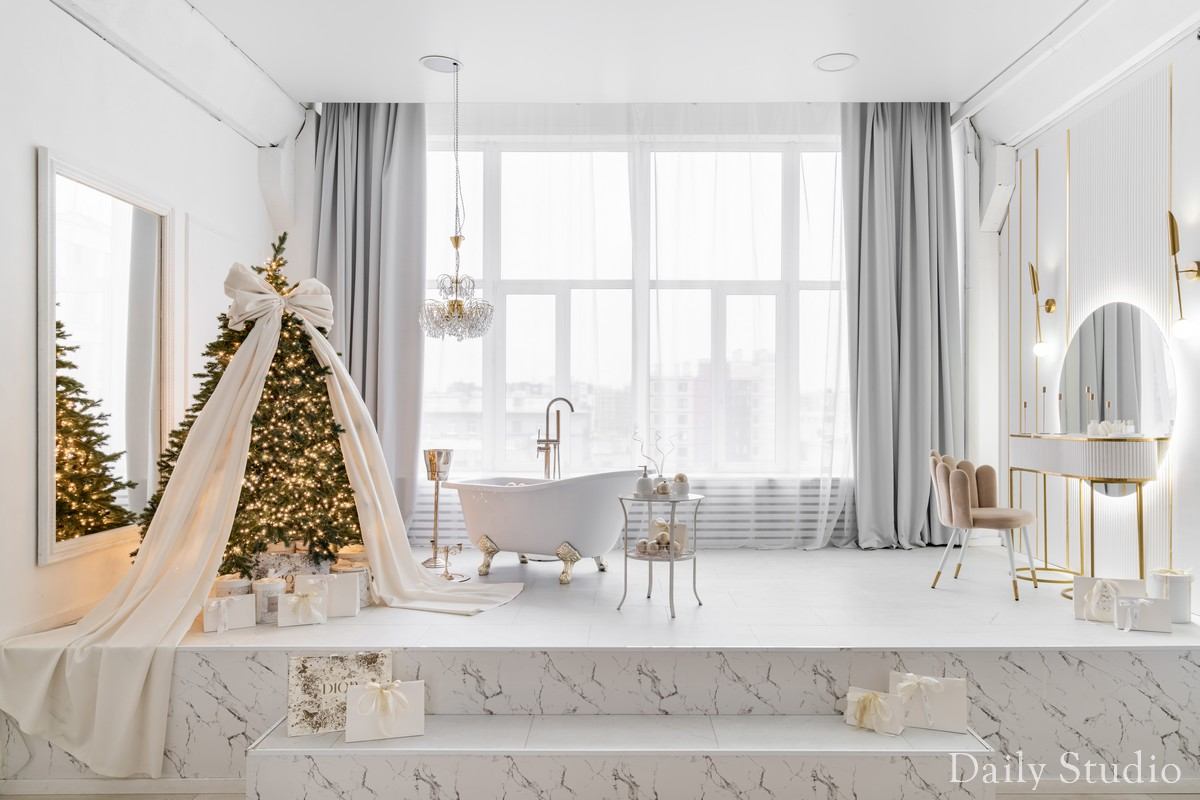 — роскошная ванна на подиуме с пышной елкой (ВНИМАНИЕ! Ванна нерабочая);
