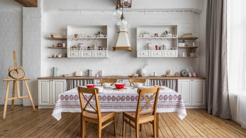 Большие окна на восточной стороне (закрываются плотными черными шторами).