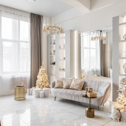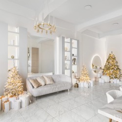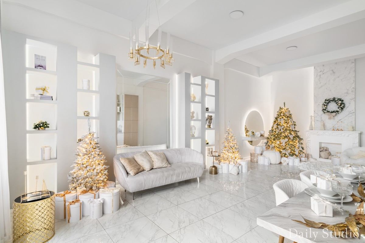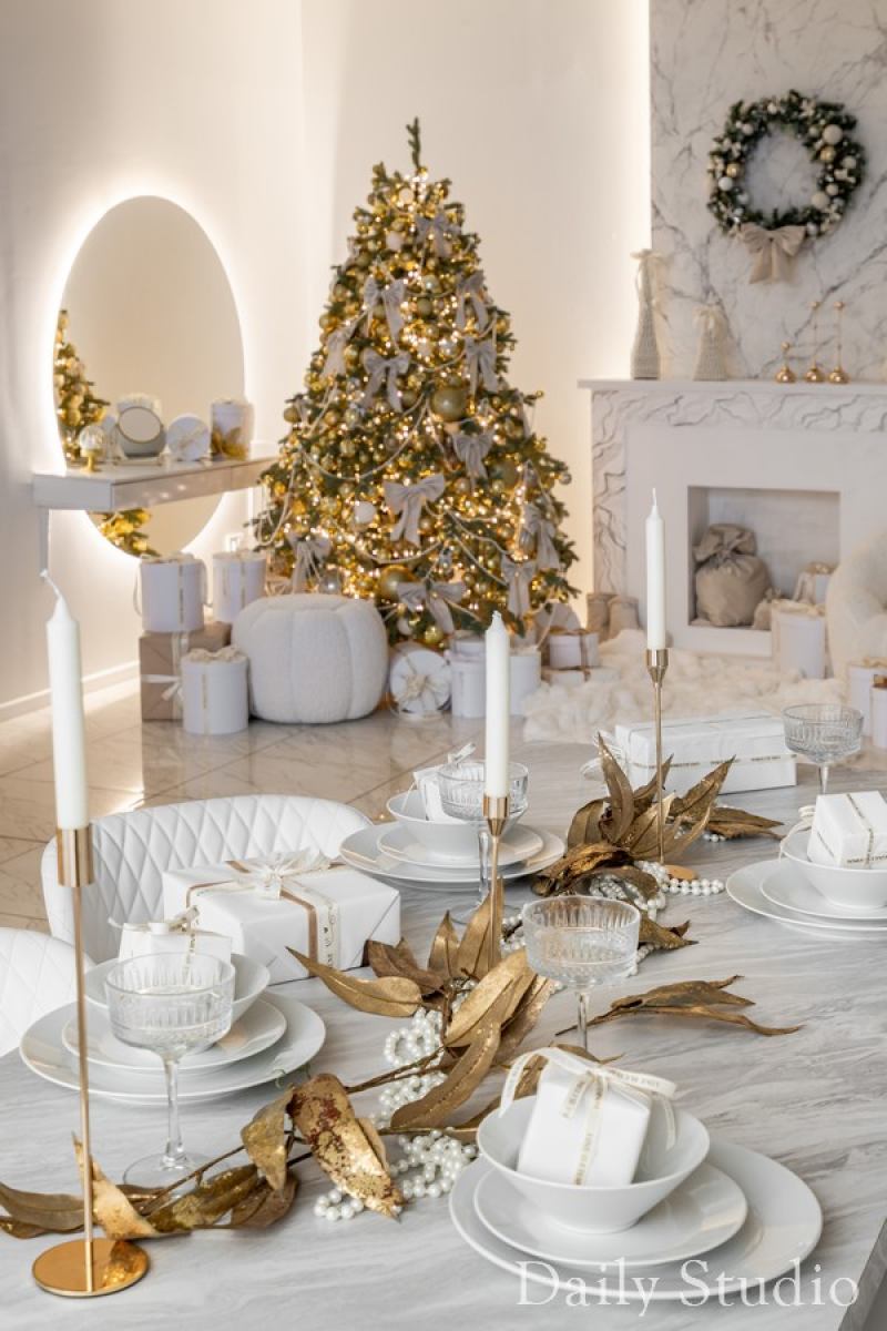 Зал Мишель — светлый и просторный зал, где встречаются стиль и свет. Лаконичный новогодний декор делает зал изящным и элегантным.