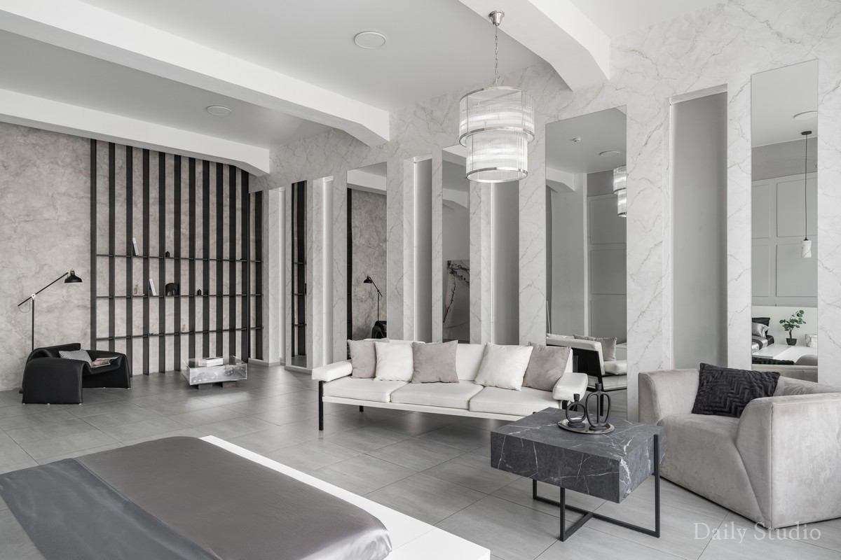 Оформленный в белых, серых и черных тонах, просторный и минималистично декорированный зал Баланс станет идеальным пространством для стильных кадров.