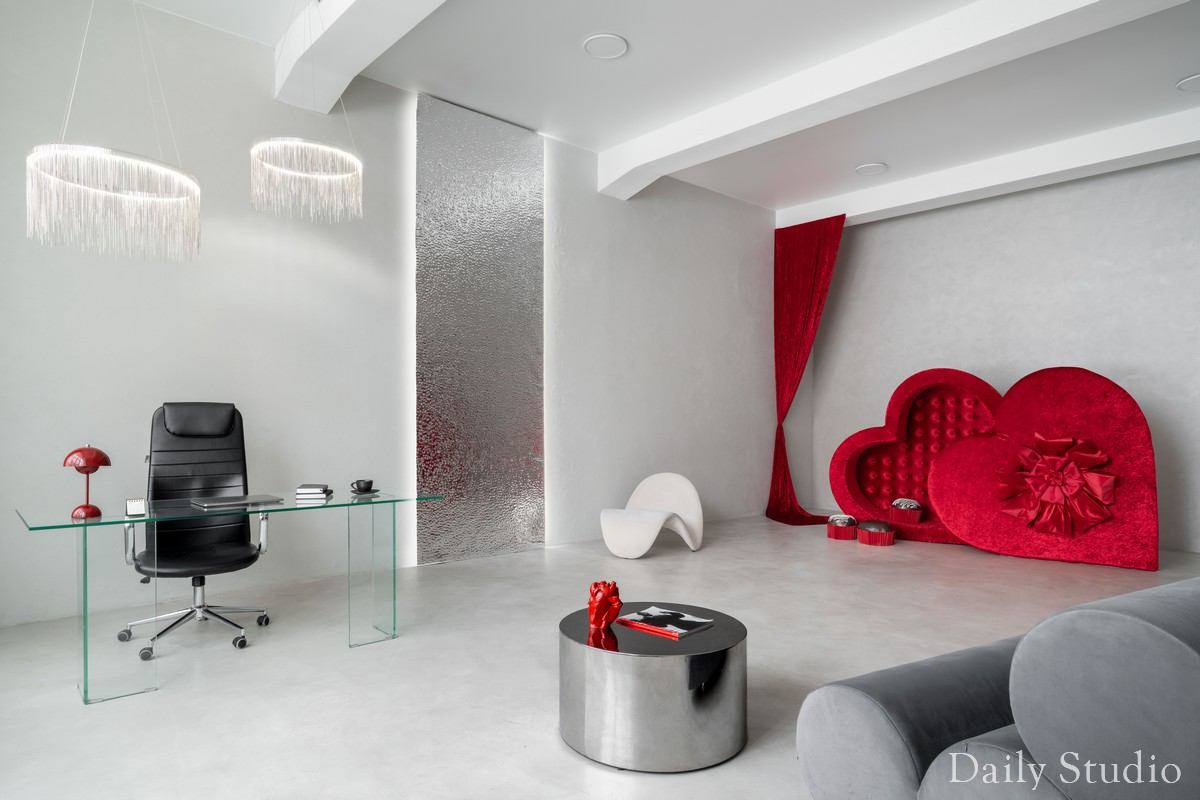 Зал Монохром — просторный светлый зал в стиле современного минимализма с дизайнерской мебелью, контрастными акцентами и стильными деталями. Идеален