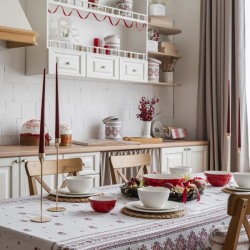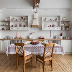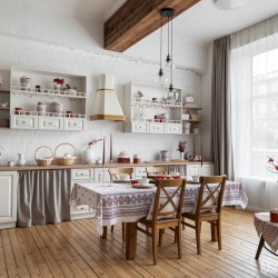 — светлая кухня в стиле прованса с новогодними декорациями;