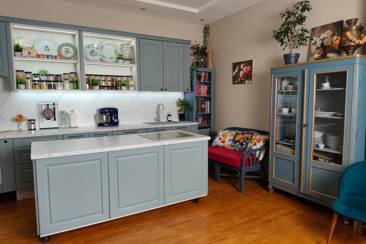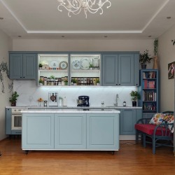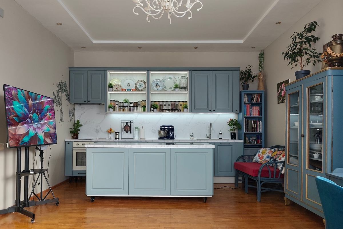 Передвижной остров оборудован розетками и варочной панелью (размер острова 80х200см).