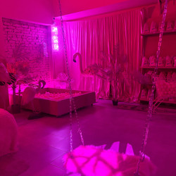 - Розовая стена с пайетками;