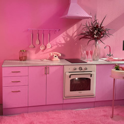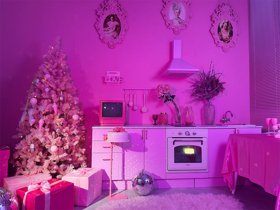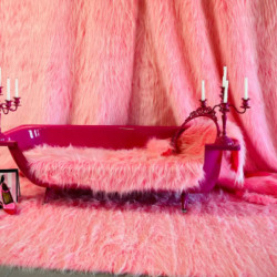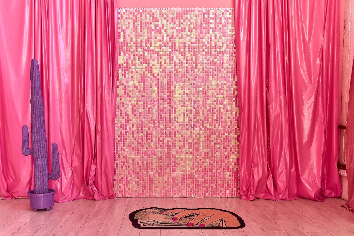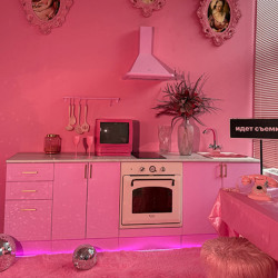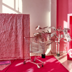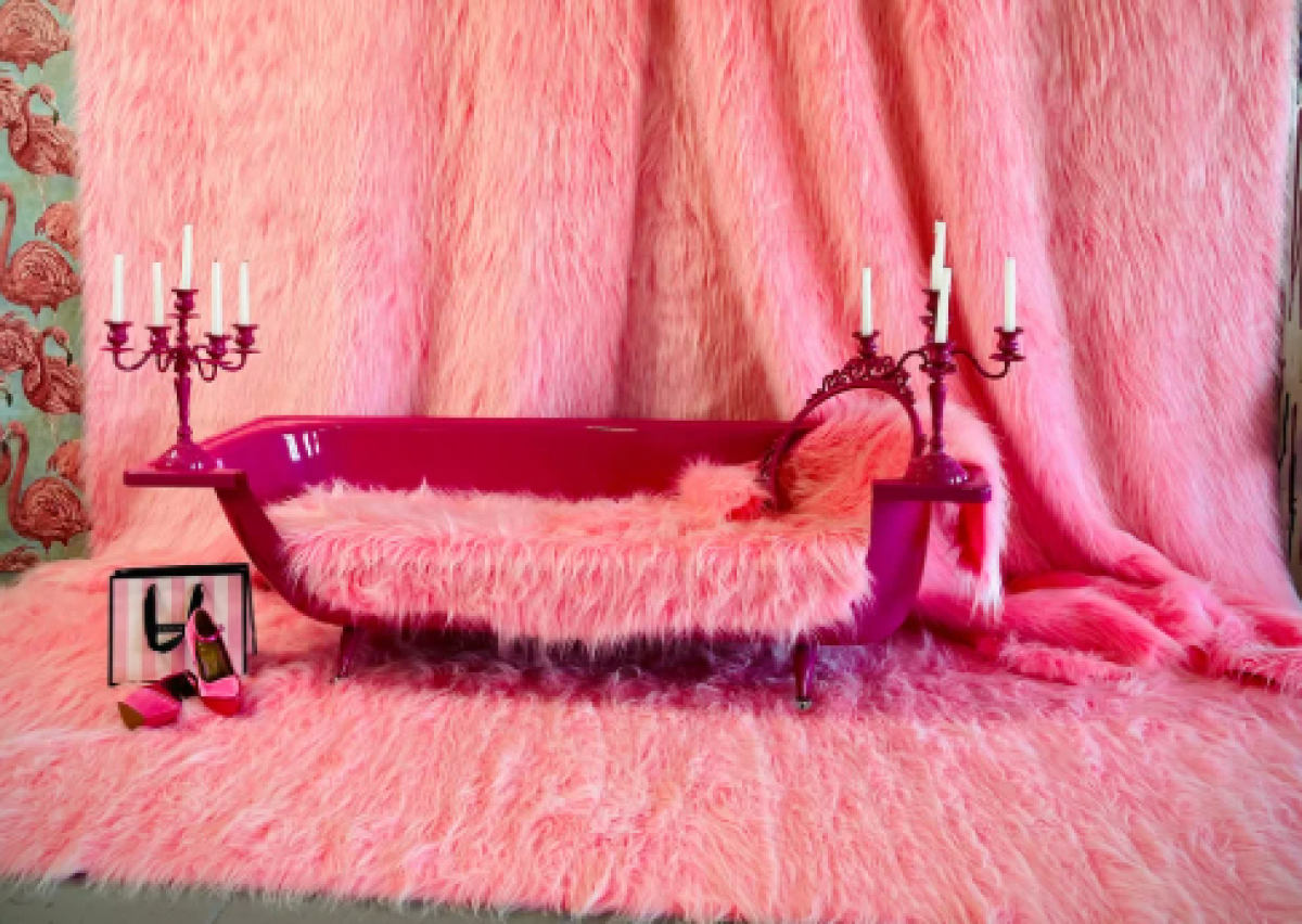 - Латексный фон цвета bubble gum — провокация, которую хочется повторить;